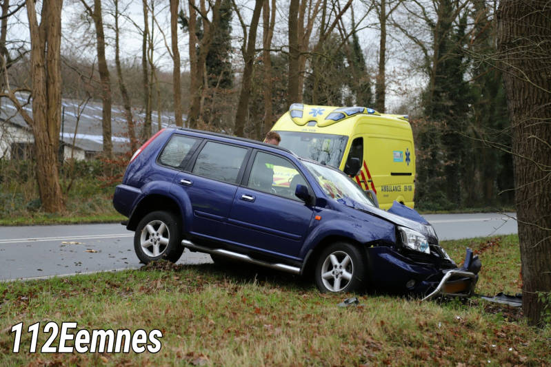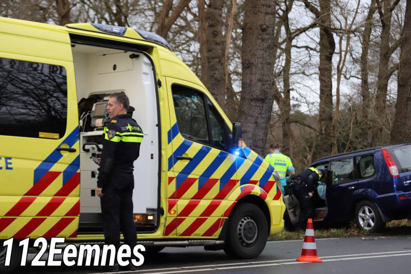 De bestuurder van de auto is door de ambulance meegenomen naar het ziekenhuis.
